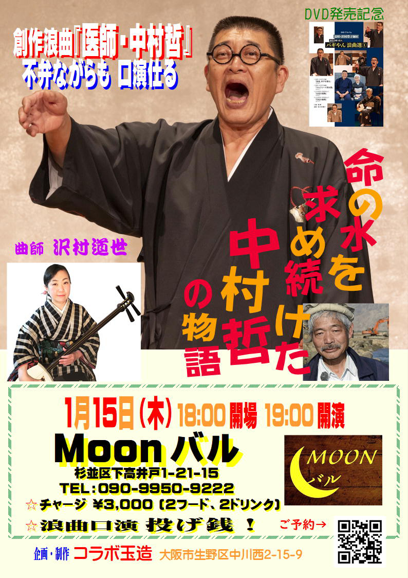 曲師:沢村道世 ![]() 1月15日(木) 18:30開場 19:00開演 Moonバル 杉並区下高井戸1-21-15 TEL 090-9950-9222 ◎投げ銭! [予約] info☆tamazo.org ☆を@に変えてください。 |